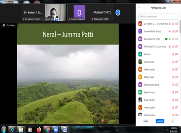 1. An Online Inter-Collegiate Seminar on ‘Virtual Study Tour to Neral-Juma Patti’ was organized on 20th August 2021. Dr. Aruna Rai, Former Head, Department of Botany, Smt. C. H. M. College, Ulhasnagar was invited as resource person for the seminar. Madam started her session with geographical location of Neral and Jumma Patti. Many scenic pictorial views were shown by her. She then discussed about the floral diversity of the area and the diverse types of plants found in the area like total parasites, root parasites, insectivorous and plants of medicinal significance. She also mentioned about the plants endemic to Western Ghats and to Mumbai Presidency. She showed photographs of many plants with detailed discussion about the botanical names and the significance of each of the plants.