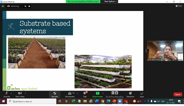 5. An online Intercollegiate talk on Hydroponics- A Scientific Approach to Soilless culture was conducted on 15th December 2021. The resource person for the talk was Dr. Shama Zaidi, Sr. Manager, R & D, Aries Agro Ltd. Mumbai. A very detailed account on the technique of hydroponics was given by explaining the history, advantages and disadvantages of hydroponics, different substratum used in the technique, nutrient requirement etc. In her presentation she covered a detailed information about the different water-based systems as well as substrate-based systems. With the help of lot of examples, she could convey the topic very effectively to the participants. With the help of ppt. and actual photographs she could generate the interest and curiosity in the minds of audience.