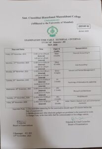 Time Table for SH25 TYBT SEM V Regular: Click here to view