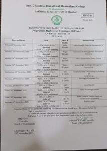 Time Table for SH25 TYBCOM SEM V Regular: Click here to view