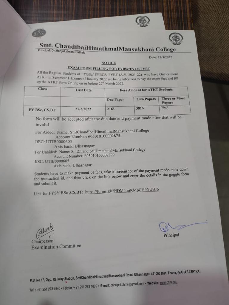 Exam Form Filling For FYBSc/FYCS/FYBT