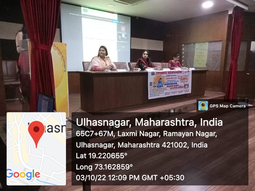 A Talk and interactive session on ‘Health Counseling for Female’ was conducted by WDC and NCC Girls Army Unit of Smt CHM college in collaboration with UMC under the flagship of Ministry of Public Health and Family Campaign “Mata Surakshit tar ghar Surakshit” on 3rd October 2022 . Guests Speaker Dr. Kasturi Patil, Medical Officer, Ulhasnagar Municipal Corporation talked about the importance of health hygiene during menstrual cycle and the need for proper nutrition.